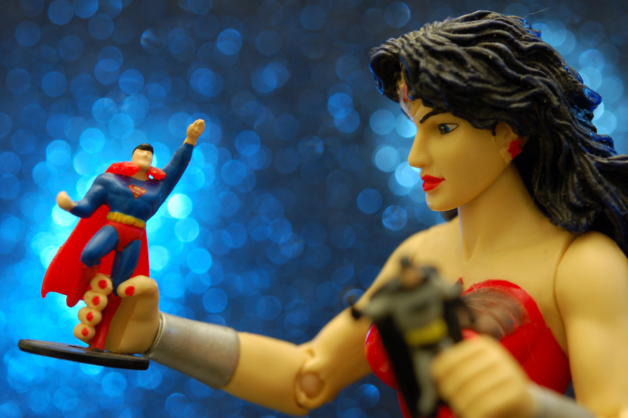 I initially had a tighter focus on Wonder Woman and the small Superman which created larger bokeh, but I decided to go for smaller bokeh so that it was easier to see the small Batman.
