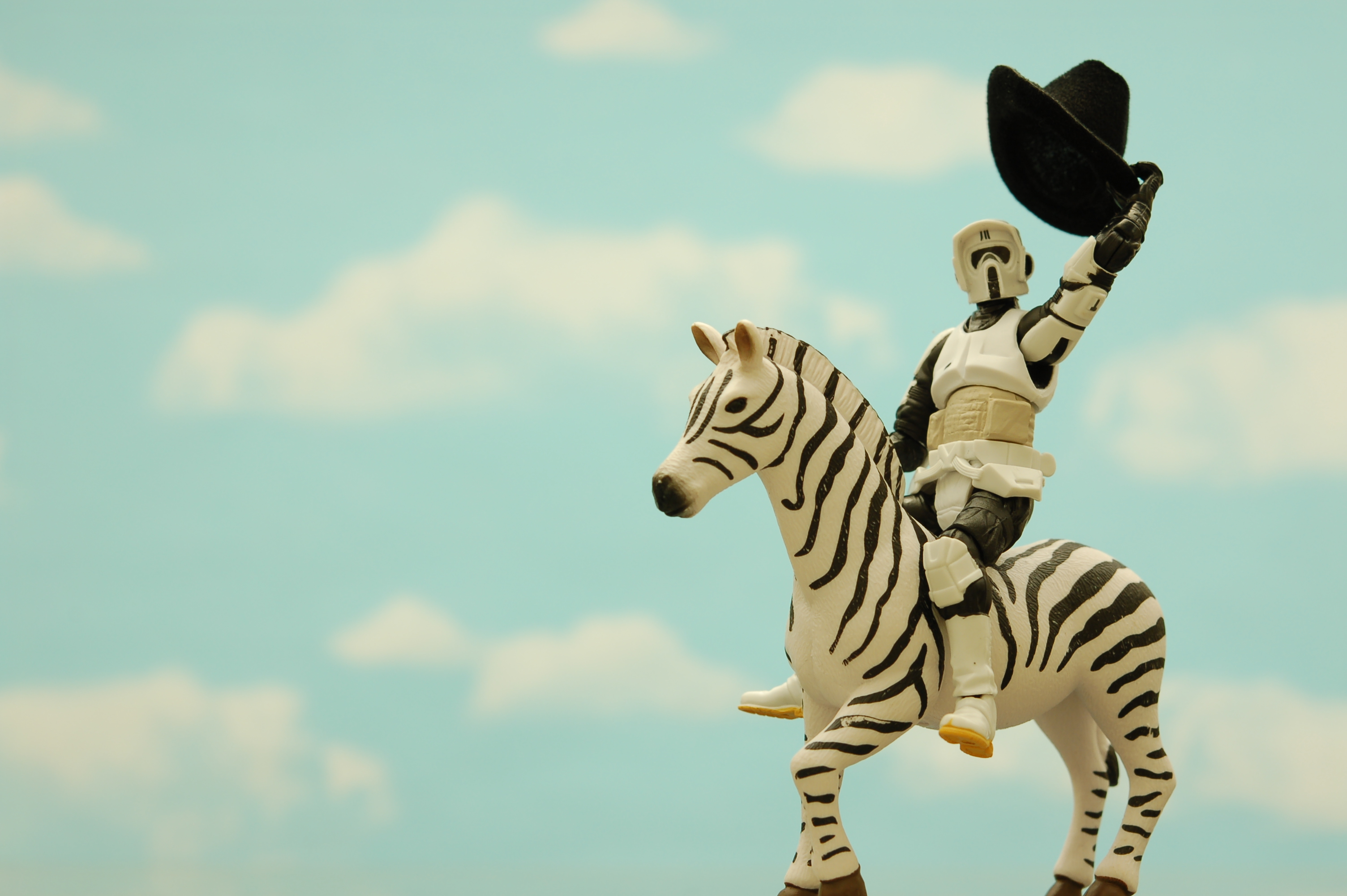 I like the idea of pairing up stormtroopers with other black-and-white things. This zebra seemed like a great mount for a scout trooper.